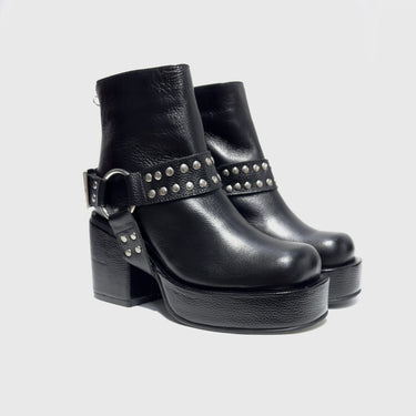 Our Philomena leather boot in black with studs on the heel, is built for all day wear with a comfortable sole.